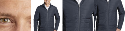 This jacket combines the warmth of low-bulk quilted insulation with flexible soft shell side panels for a trend-right, weather-resistant look. Can be zipped in and secured by snap attachments inside an outer Collective layer 100% polyester woven shell 100% polyester printed lining with 100% polyfill insulation behind the outer quilted woven shell 100% polyester knit bonded to a water-resistant film insert and a 100% polyester microfleece lining at side panels and under arms Slightly longer length Molded center front zipper Stretch side panels Open front pockets Port Pocket for decoration access
