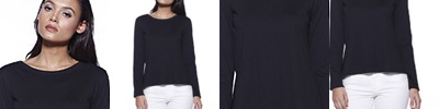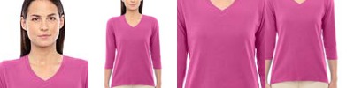 5 oz./yd² / 170 gsm, 58% cotton, 39% modal, 3% spandex jersey; Always flattering Perfect Fit™; Soft modal blend drapes without clinging; V-neck collar; Bracelet length sleeves, ends right where you want it; Hi-low hemline; Longer length for everyday activity and movement;