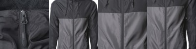 • Matte finish eyelets and zippers