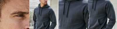 • Split front pouch pockets