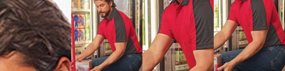 - Contrast 3-needle coverstitch on sport shoulder, armholes and sleeves