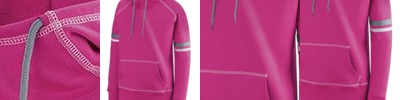 • Contrast color drawcord in scuba shaped hood on sizes M-2XL only