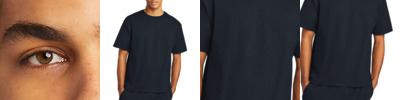 6-ounce, 100% cotton 99/1 cotton/poly (Ash) 60/40 cotton/poly (Charcoal Heather) 90/10 cotton/poly (Oxford Grey) Shoulder-to-shoulder taping Double-needle sleeves and hem Champion C logo on left sleeve Tag-free label