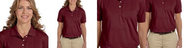 6.3 oz./yd2 / 215 gsm, 100% combed cotton pique with EZ Cool wicking technology; no-pill, no-fade, no-shrink, no-curl collar, no-wrinkle performance; Active fit; Three-button placket;