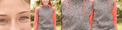 • Charcoal fleck body with contrast-color solid hood, drawcord and sleeves