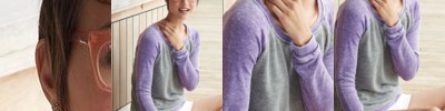 - Contrast color raglan sleeves, collar, "V", and waistband